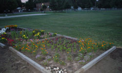 Participants were not allowed to plant vegetables, due to the deer that live nearby, but they were otherwise free to design and plant whatever they wanted within a 10x10 area. Each team was given a budget, vouchers to a local nursery, a timeline, and access to shovels and water.